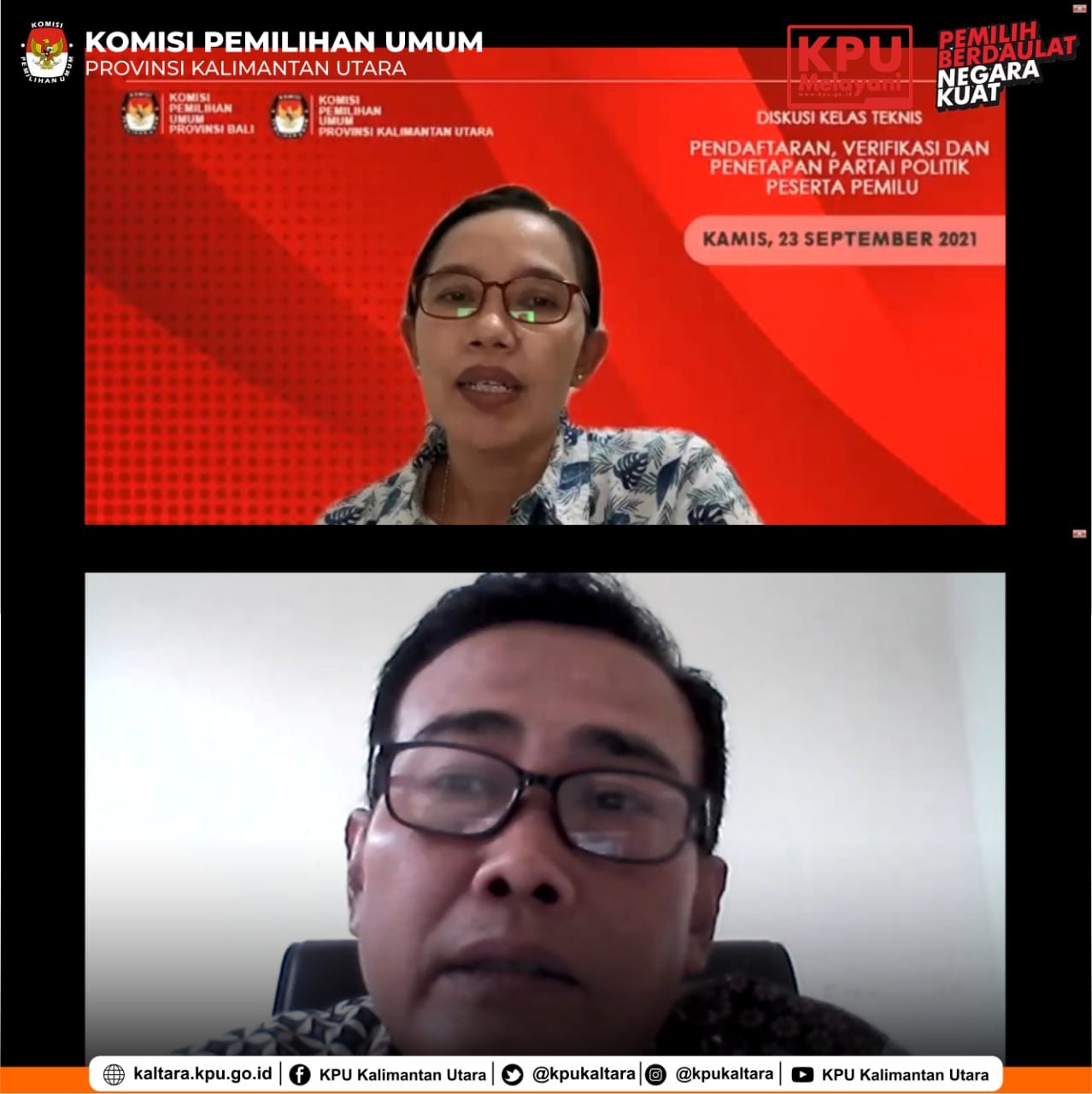 DISKUSI KELAS TEKNIS TAHAP I DENGAN TEMA “PENDAFTARAN, VERIFIKASI DAN PENETAPAN PARTAI POLITIK PESERTA PEMILU” ANTARA KPU SE-KALIMANTAN UTARA DAN KPU SE-BALI