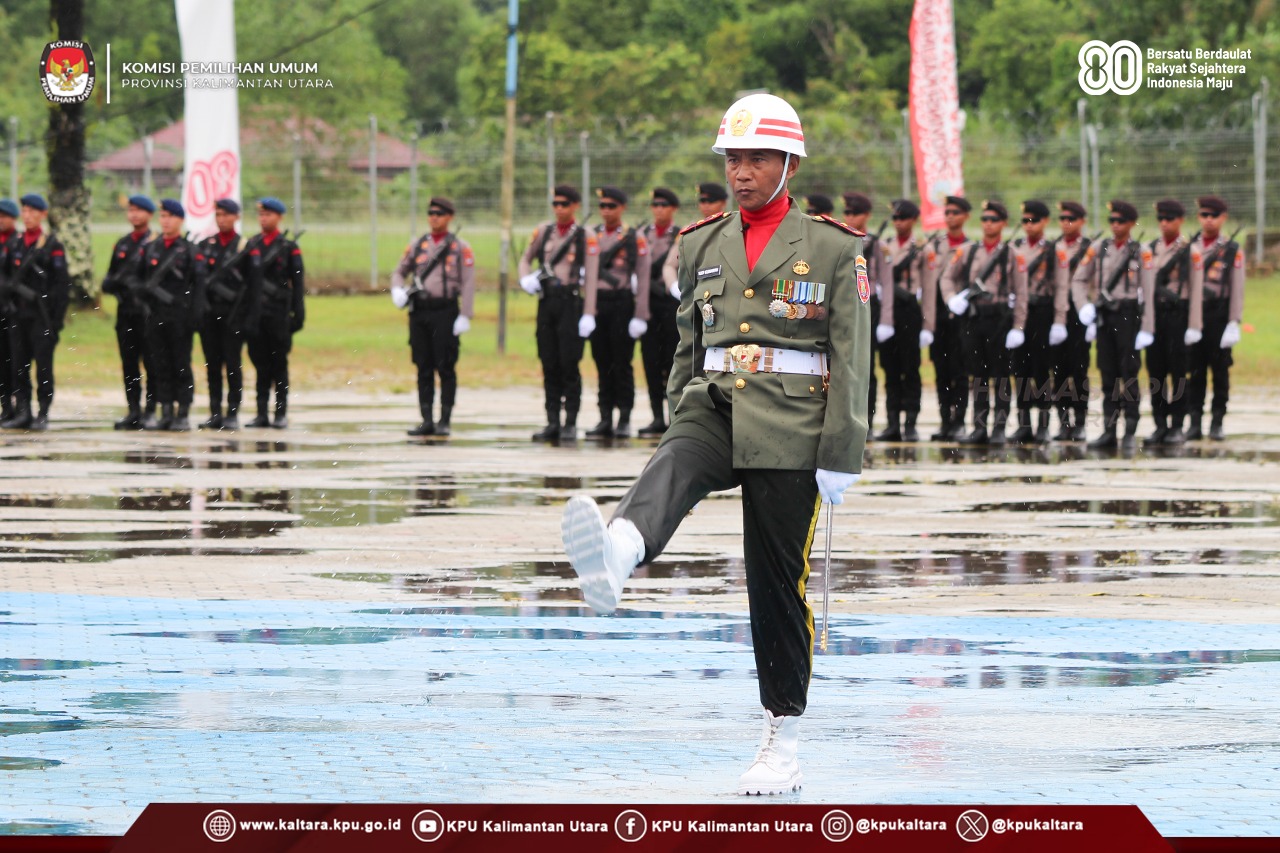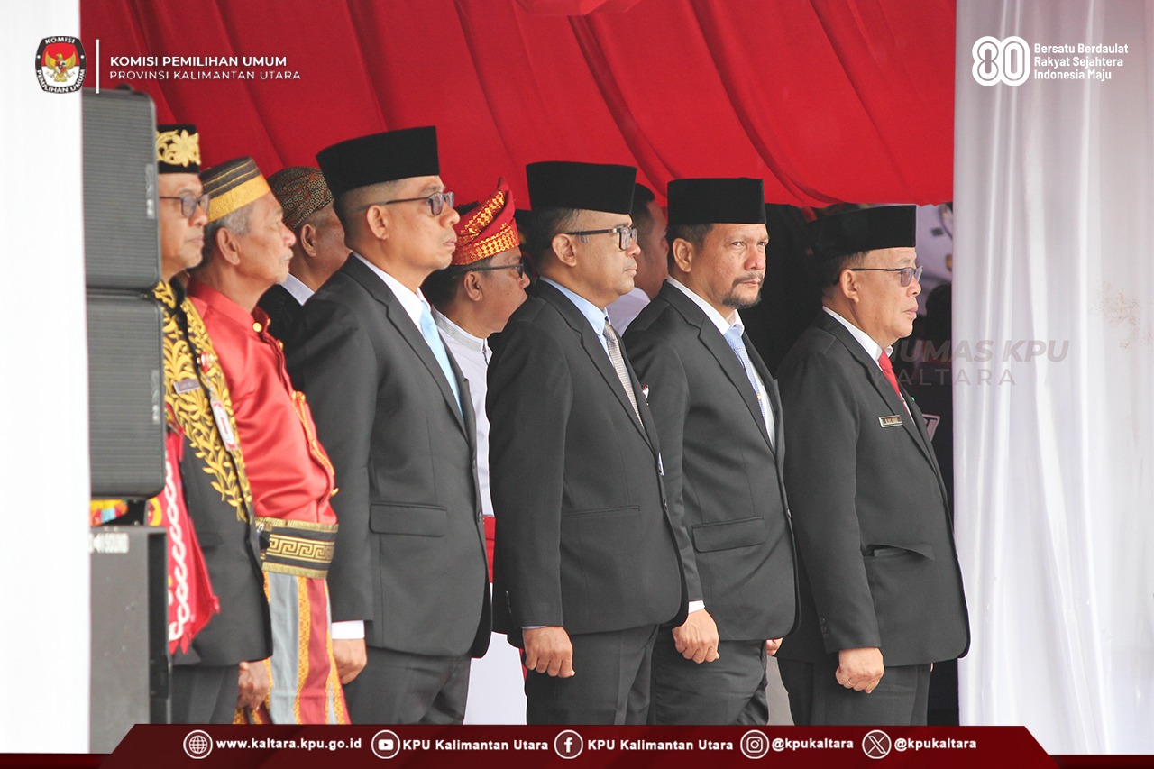 Ketua dan Sekretaris KPU Kalimantan Utara Hadiri Upacara Peringatan HUT Ke-80 RI di Lapangan Agatis Tanjung Selor