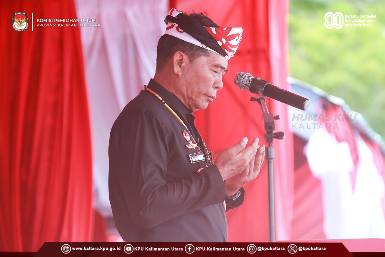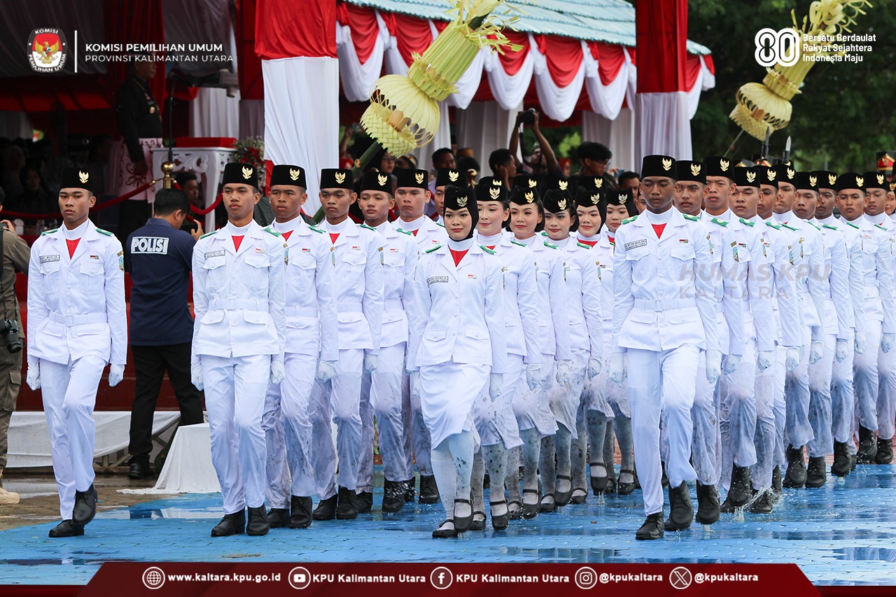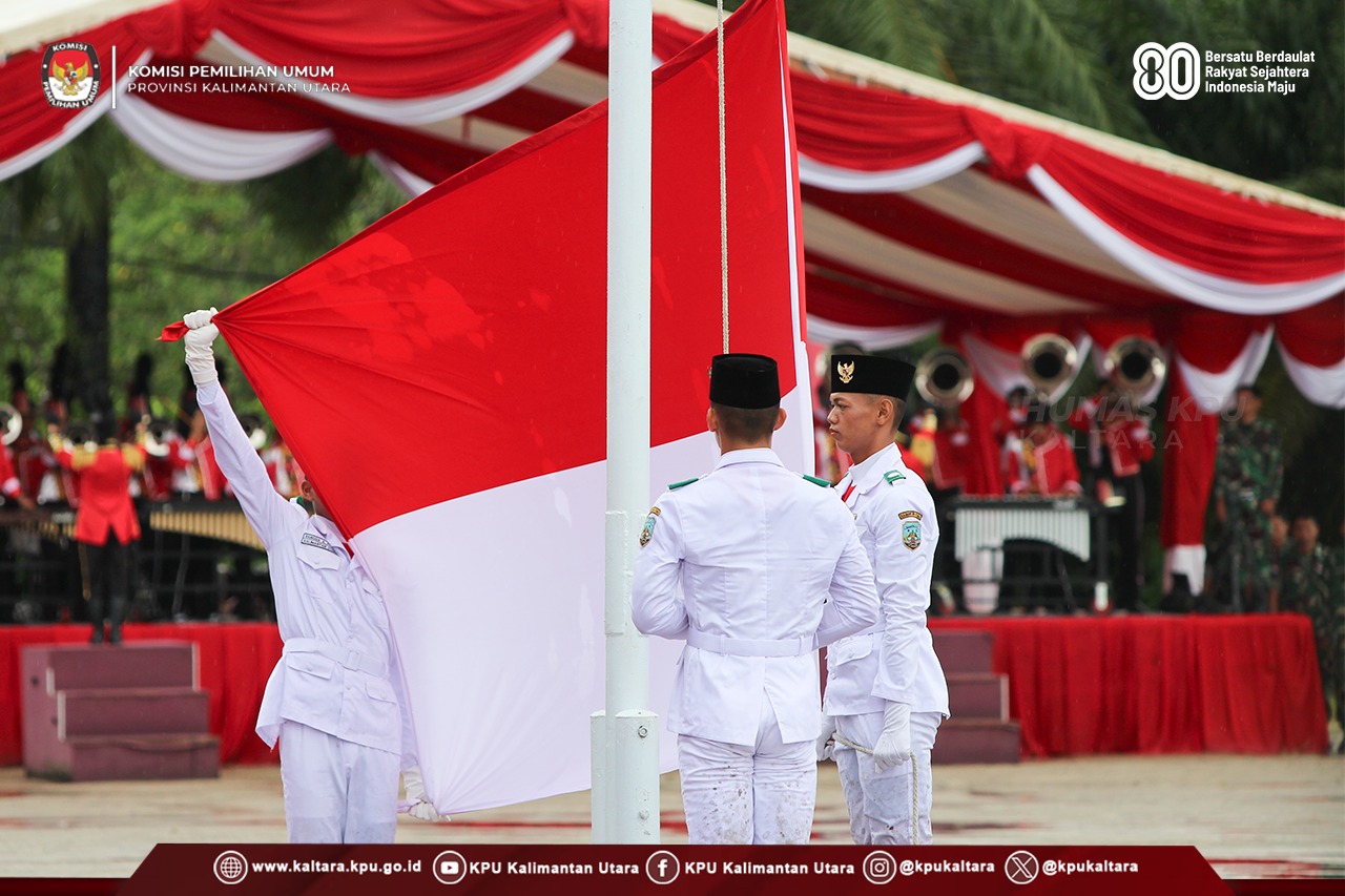Ketua KPU Provinsi Kalimantan Utara, Hariyadi Hamid, dan Sekretaris KPU Kaltara, Hari Soesilo, menghadiri upacara peringatan Hari Ulang Tahun (HUT) ke-80 Kemerdekaan Republik Indonesia. Acara yang diselenggarakan oleh Pemerintah Provinsi Kalimantan Utara ini berlangsung di Lapangan Agatis, Tanjung Selor, pada hari Minggu (17/08/2025).