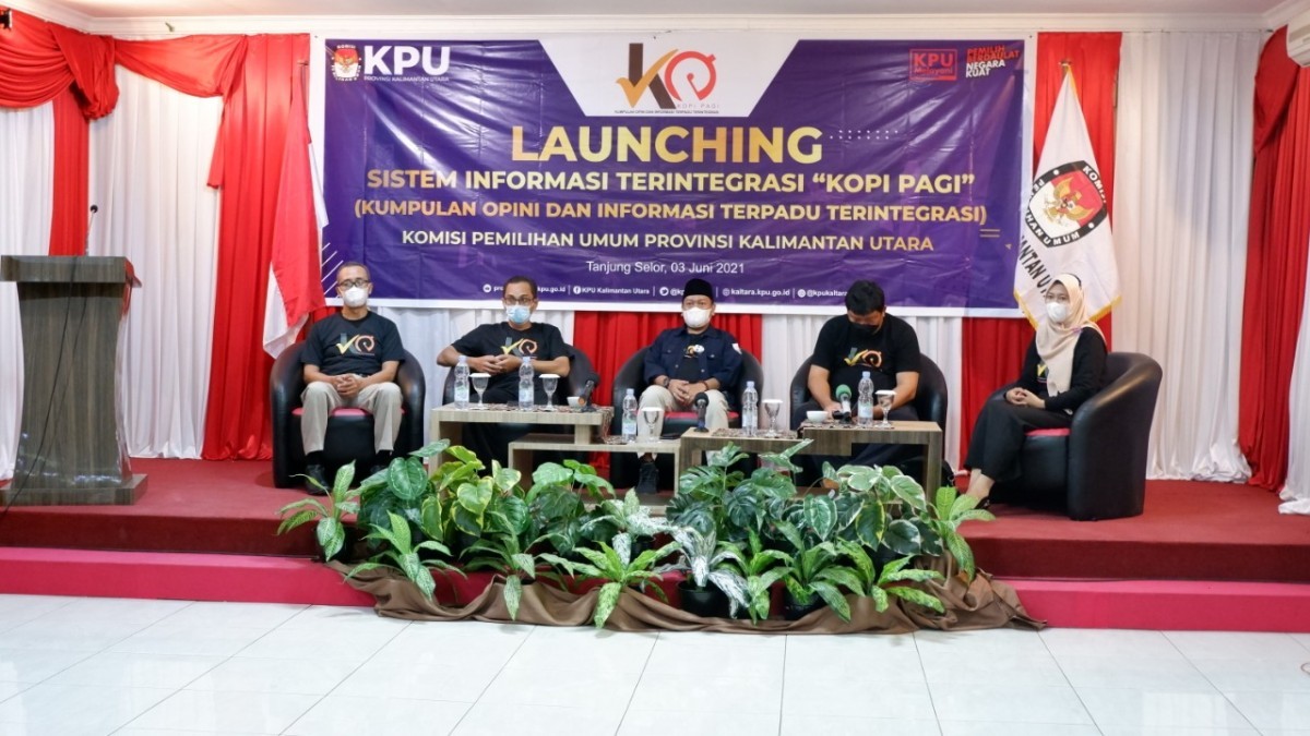 Tanjung Selor, Kamis (3/6/2021)- KPU Provinsi Kalimantan Utara resmi meluncurkan aplikasi baru yang diberi nama “Kopi Pagi”. Kopi Pagi sendiri merupakan kependekan dari Kumpulan Opini dan Informasi Terpadu Terintegrasi. Sementara pengertian Aplikasi Kopi Pagi sendiri adalah aplikasi terintegrasi yang dibuat untuk meningkatkan sinergitas penyelenggara Pemilu dan meningkatkan partisipasi masyarakat. Aplikasi tersebut mengusung konsep dengan mengedepankan Efektifitas dan Efisiensi terhadap akses informasi kepemiluan yang berbasis teknologi informasi. Sehingga masyarakat bisa dengan mudah mencari informasi yang dibutuhkan melalui gadget yang mereka miliki dimana saja dan kapan saja.