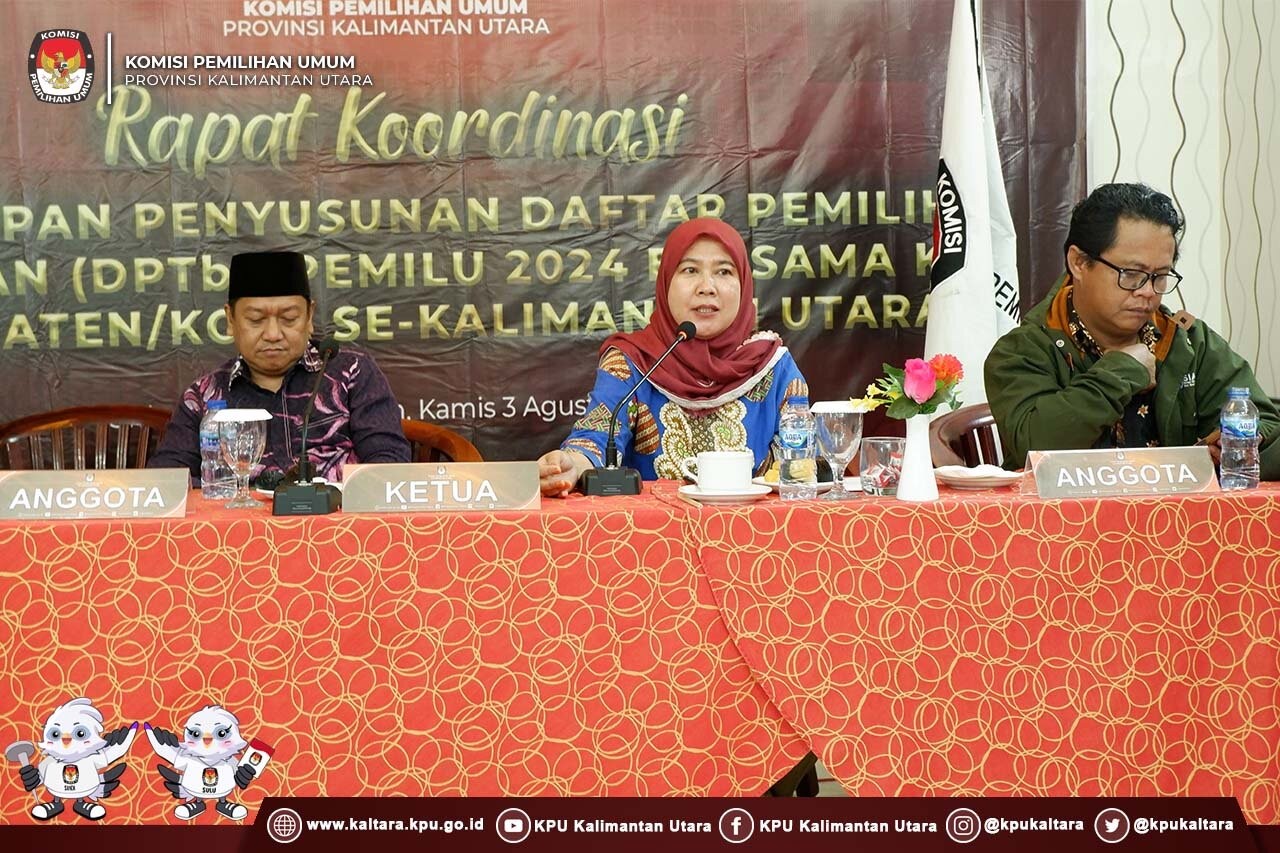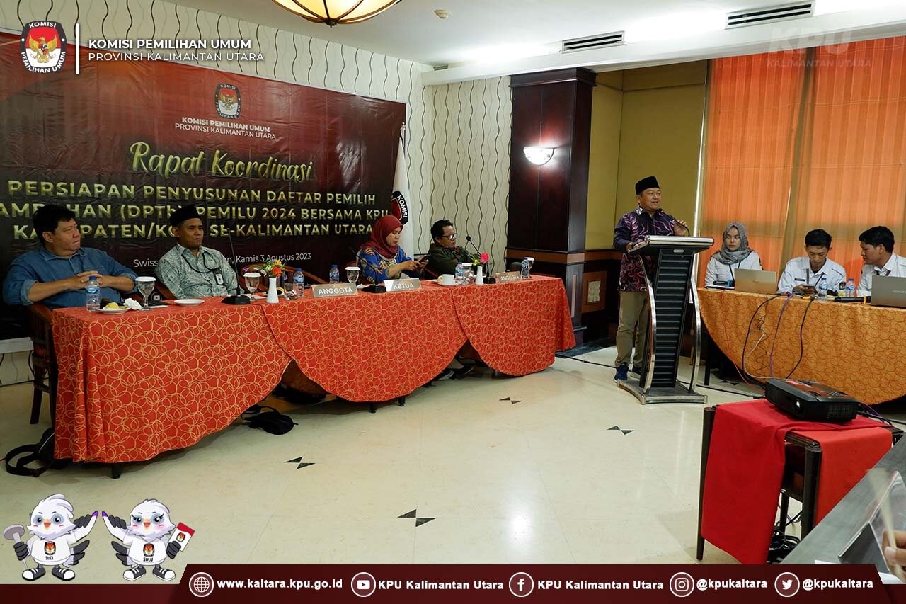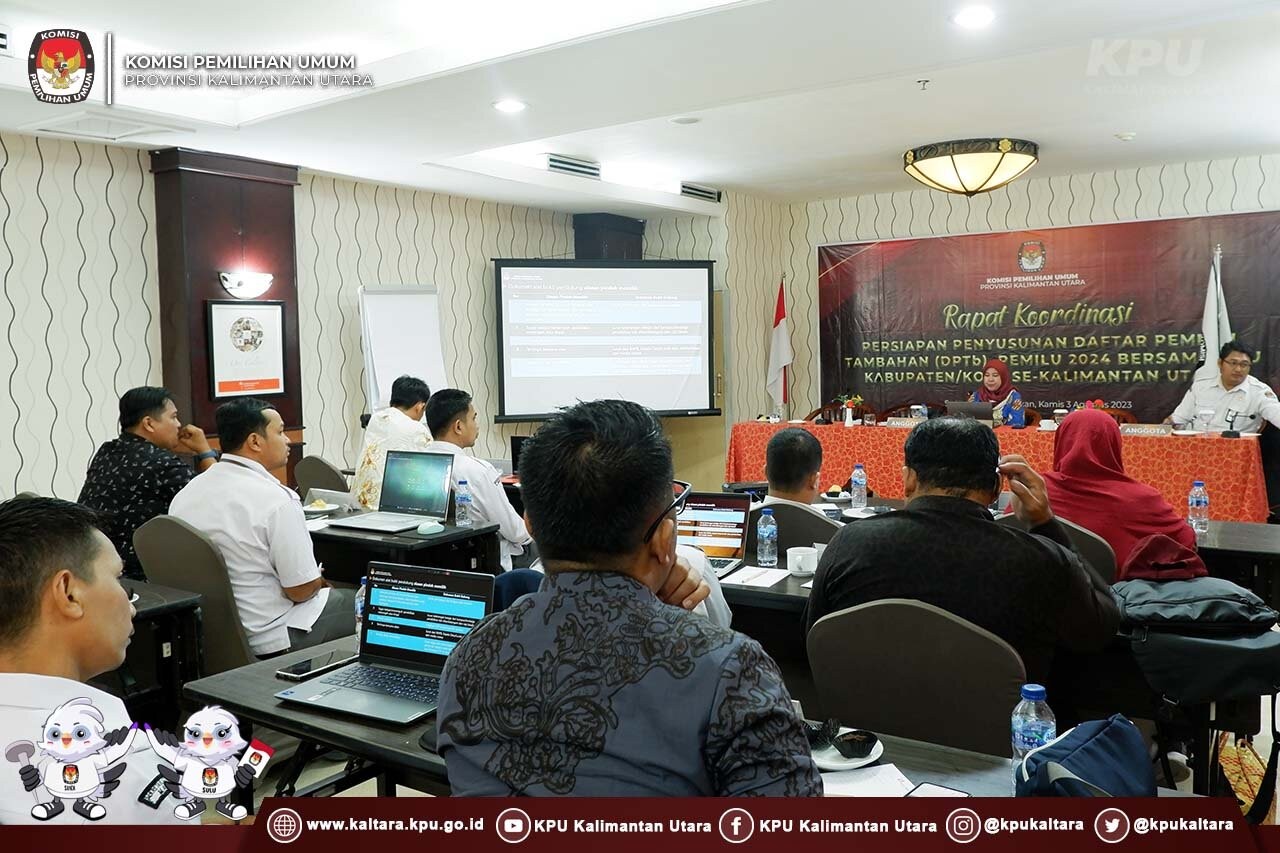 KPU Provinsi Kalimantan Utara Melaksanakan Rapat Koordinasi Persiapan Penyusunan Daftar Pemilih Tambahan (DPTb) Pemilu 2024 Bersama KPU Kabupaten/Kota se-Kalimantan Utara