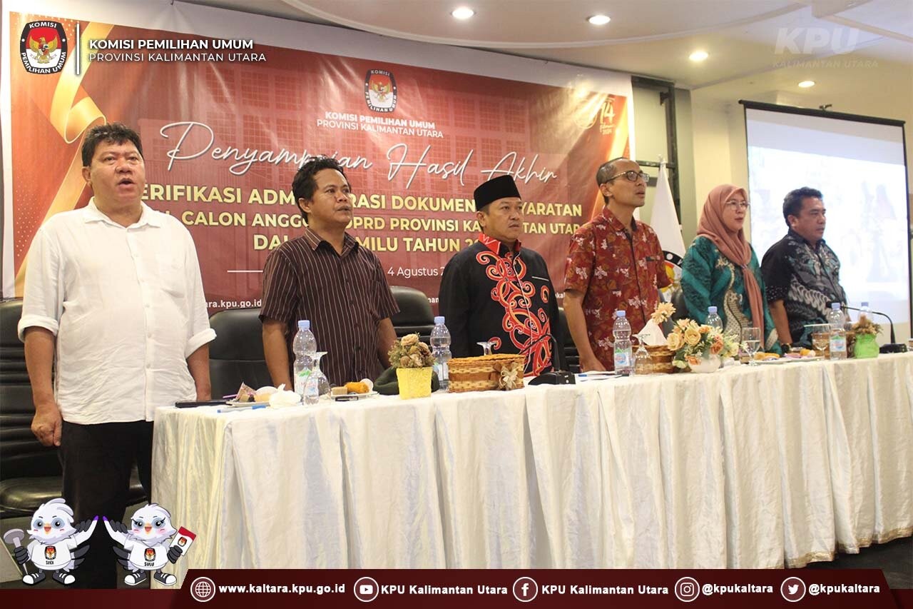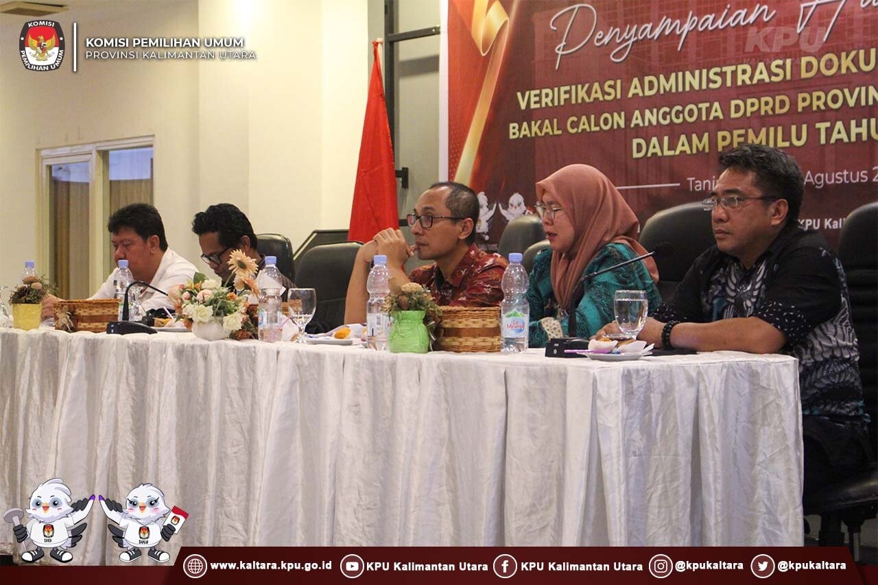KPU Provinsi Kalimantan Utara Menyampaikan Hasil Akhir Verifikasi Administrasi Dokumen Persyaratan Bakal Calon Anggota DPRD Provinsi Kalimantan Utara dalam Pemilu Tahun 2024.