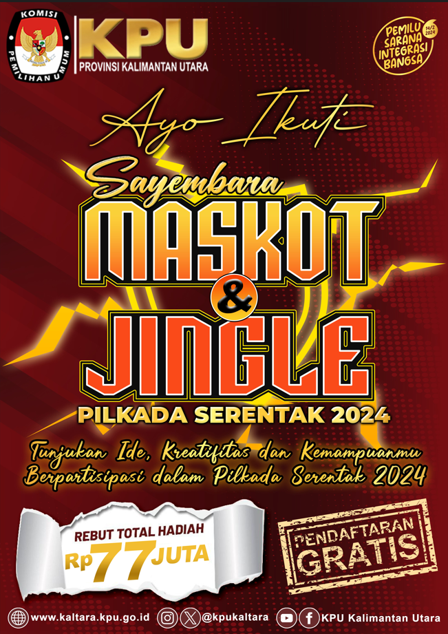 PENGUMUMAN PERPANJANGAN MASA PENDAFTARAN SAYEMBARA MASKOT DAN JINGLE PEMILIHAN GUBERNUR DAN WAKIL GUBERNUR KALIMANTAN UTARA TAHUN 2024