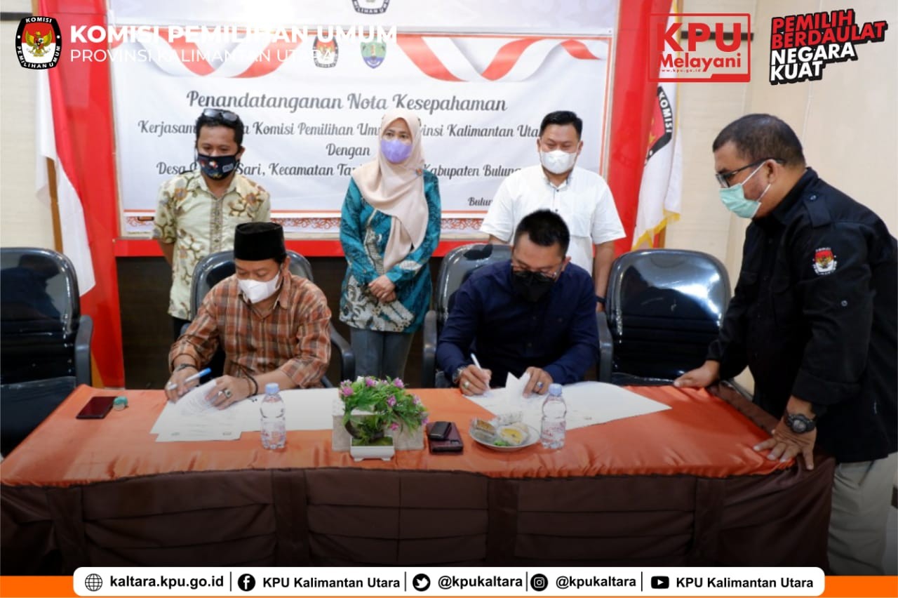 PROGRAM DESA PEDULI PEMILU DAN PEMILIHAN (DP3) : PENANDATANGANAN NOTA KESEPAHAMAN KERJASAMA ANTARA KPU PROVINSI KALIMANTAN UTARA DAN KEPALA DESA GUNUNG SARI