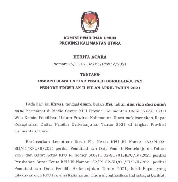 Berdasarkan ketentuan Pasal 53 Peraturan Komisi Pemilihan Umum Republik Indonesia Nomor 9 Tahun 2018 tentang Rekapitulasi Hasil Penghitungan Suara dan Penetapan Hasil Pemilihan Gubernur dan Wakil Gubernur, Bupati dan Wakil Bupati dan/atau Wali Kota dan Wakil Wali Kota sebagaimana telah beberapa kali diubah, terakhir dengan Peraturan Komisi Pemilihan Umum Nomor 19 Tahun 2020 tentang Perubahan atas Peraturan Komisi Pemilihan Umum Nomor 9 Tahun 2018 tentang Rekapitulasi Hasil Penghitungan Suara dan Penetapan Hasil Pemilihan Gubernur dan Wakil Gubernur, Bupati dan Wakil Bupati dan/atau Wali Kota dan Wakil Wali Kota; Berita Acara Komisi Pemilihan Umum Provinsi Kalimantan Utara Nomor: 7/PL.02.7-BA/65/Prov/I/2021 tentang Rapat Pleno Terbuka Penetapan Pasangan Calon Terpilih Pada Pemilihan Gubernur dan Wakil Gubernur Kalimantan Utara Tahun 2020; dan Keputusan Komisi Pemilihan Umum Provinsi Kalimantan Utara Nomor 3/PL.02.7-Kpt/65/Prov/I/2021 tentang Penetapan Pasangan Calon Terpilih Dalam Pemilihan Gubernur dan Wakil Gubernur Kalimantan Utara Tahun 2020, Komisi Pemilihan Umum Provinsi Kalimantan Utara mengumumkan Pasangan Calon Terpilih dalam Pemilihan Gubernur dan Wakil Gubernur Kalimantan Utara Tahun 2020. Pengumuman dapat di unduh di sini.